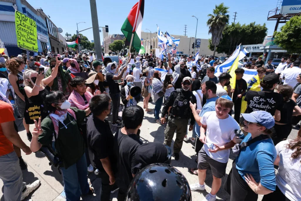 A pro-Palestinian protest held outside a Los Angeles synagogue devolved into chaotic street violence with pro-Israel counterprotesters on Sunday in an incident that several officials, including President Joe Biden, criticized as antisemitic.